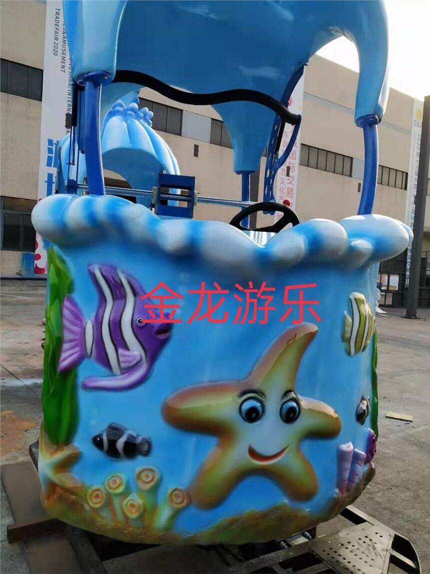 太空漫步是一种创意新颖的架空游览车类游乐设备。既保留了脚踏车的前行功能,又增加了 自动行驶功能。当游客蹬累时,可换到自动档,车体自动前行,同时,行进中游客通过仪表盘上 的按键选择喜爱的乐曲,在音乐中漫步青云,心旷神怡。在行进中游客可通过方向盘使车体 360° 旋转,欣赏四周的美景,为了经营方便,车体上设置了感应装置,当后车追上前车时,前车自动 由脚踏档变为自动前行,使节假日车的行驶流畅。太空漫步外形设计仿佛来自太空的飞行器,新 颖时尚,是一种全新概念的空中脚踏车。