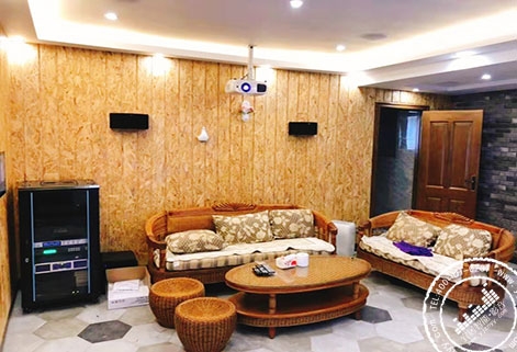 音频系统采用的是美国杰士Klipsch 5.1.2 Dolby Atoms 家庭私人影院系统、搭配日本天龙Denon AVR-2300 7.2声道功放,视频系统是由日本EPSON TW-6300 主动3D高清投影仪、和美国ELITESCREENS亿立120寸高清画框透声幕布组成,配置了中国视点9.0家庭卡拉OK系统和美国快思聪crestron智能控制系统。