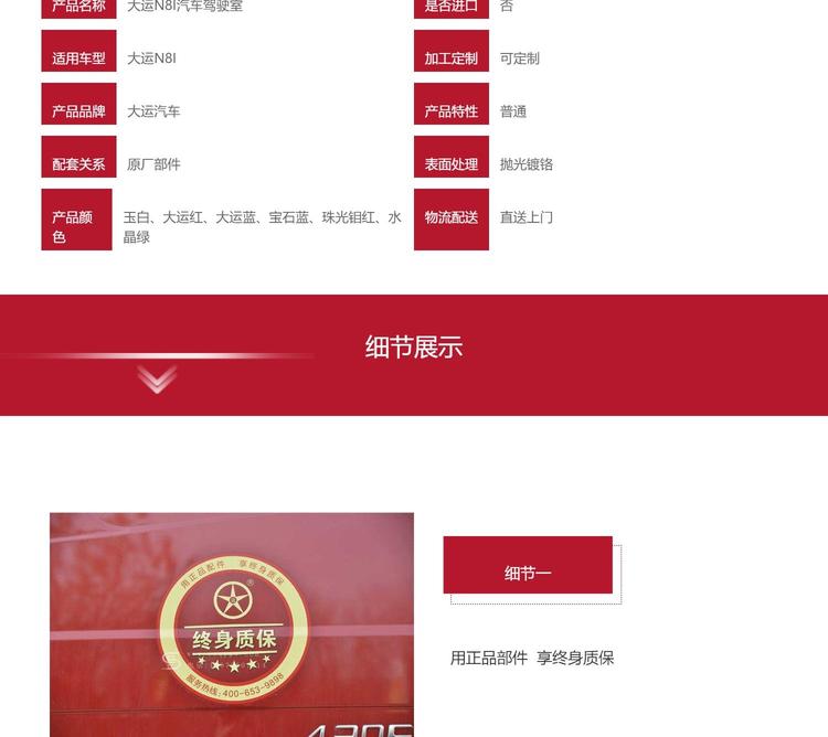 产品特性 | 驾驶室总成 | ||