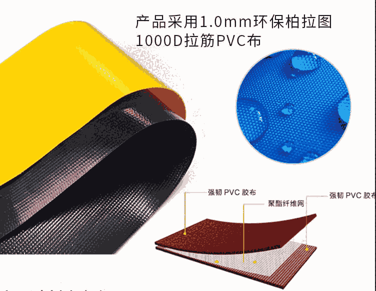 1000D柏拉图0.9mmPVC夹网布 (高周波高温热合产品)