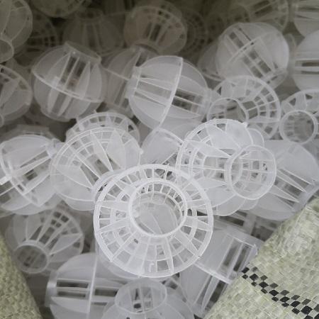 今天我给大家介绍一下博胜多面空心球填料产品。博胜多面空心球填料采用聚丙烯塑料制成球状,在球中部沿整个周长有一道加固环,环的上下各有十二片球瓣,沿中心轴呈放射形布置,适用于二氯化碳脱气塔,接触反应塔等装置。广泛应用于除氯、除氧气、除二氧化碳气等环保设备中。
