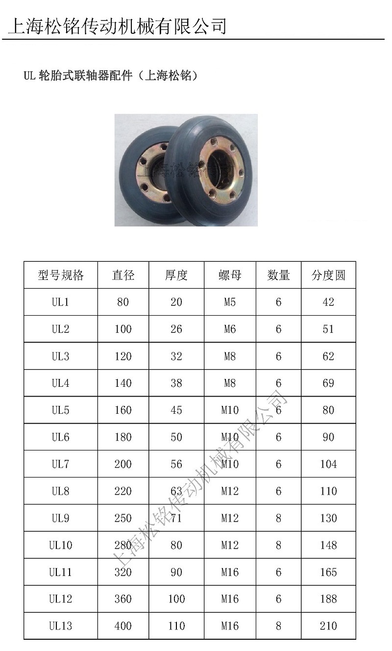 上海松铭传动机械有限公司是一家研究、设计、销售传动类产品的企业,主营产品有:ML梅花弹性联轴器、GR星型弹性联轴器、弹性膜片联轴器(DJM、SJM、JMII、JMIIJ)、弹性柱销套联轴器、十字轴万向联轴器、万向节、鼓型齿联轴器、波纹管联轴器、UL轮胎联轴器、SL十字滑块联轴器,KC链条联轴器、JS蛇型弹簧联轴器、凸缘联轴器产品等,Z型胀紧联结套及锥套皮带轮(SPA、SPB、SPC、SPZ)