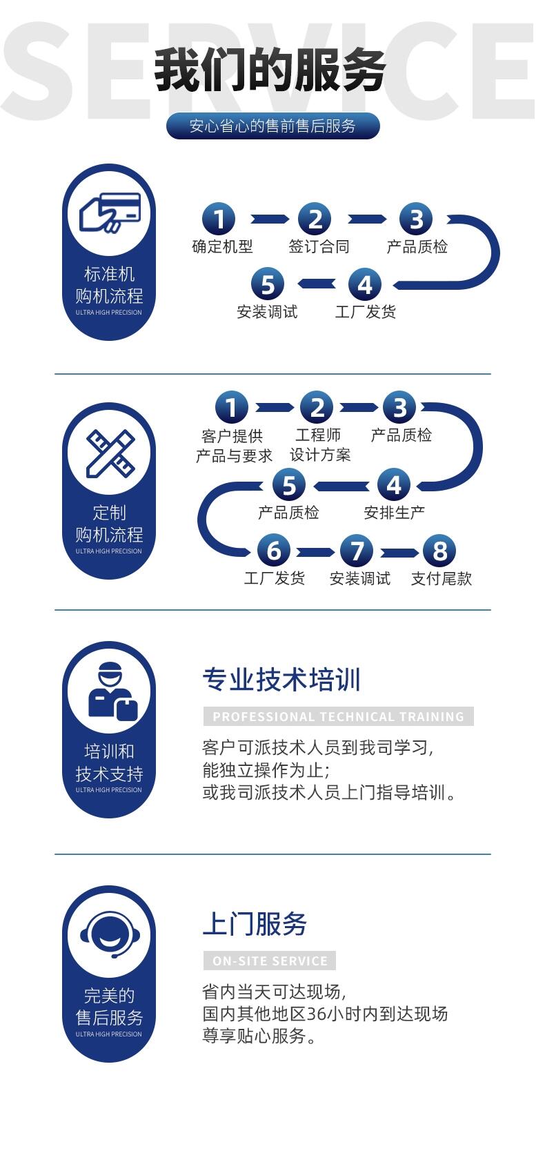 已订购客户,在保修期内我们将免费提供安装、使用、维护的指导培训服务,此外,我司还可根据客户的不同需求设计、制造各类多头、异形、自动化及非标专用电阻焊焊接设备。