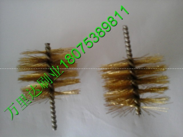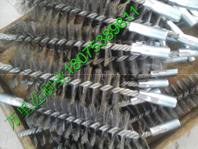 绞线刷扭线刷:单位:mm; 1、钢丝铜丝绞线刷材料:铜丝、不锈钢丝、碳钢丝(丝径ф0.06—ф1.0)、铁线; 可制作双股线、三股线、四股线绞线刷,最小外径可做到4mm;机械零件深孔、相关孔、同心大小孔相连处在加工过程中都会产生毛刺,去除毛刺可以提高零件品质,是机械加工工艺重要一环。利用通道刷处理小孔毛刺是必要,经济,高效率的方法。 2、洗瓶刷材料:尼龙丝(丝径ф0.06—ф1.0)、猪鬃、棕丝、剑麻、不锈钢线;可制作双股丝、三股线、四股线绞线刷,最小外径可做到1.2mm。洗瓶刷用于清除试管瓶、塑料瓶、玻璃瓶、刷毛有尼龙、猪鬃等材料。可按瓶径大小制作毛刷。 管道刷,英文为 tube brush ,又叫试管刷,管子刷,清孔刷,扭丝刷,内孔刷,内管刷,清槽刷等,是一种应用非常广泛的产品,属于抛光清理除、除锈功能的范畴。主要是由铁丝(钢丝)作骨架,加以扭制.上面带有许多排列整齐,向外伸展的细刷丝构成。刷丝材料有尼龙丝,纤维毛,猪鬃,钢丝,铜丝,磨料丝等.管道刷一般使用在液压阀内控去毛刺、缸套活塞内控抛光、钢桶清洗、试管清洗、锅炉清除污垢、金属零件内孔去毛刺等 管道刷的适用范围.