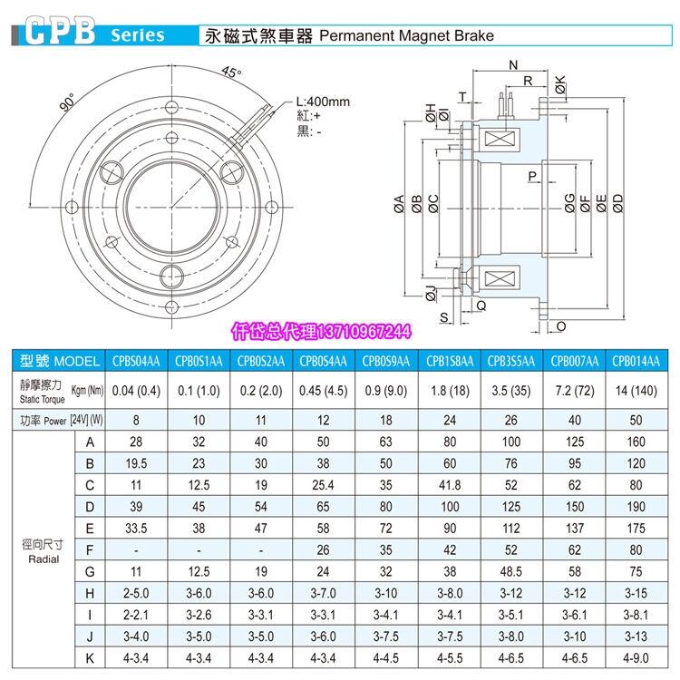 台湾仟岱永磁刹车器CPB1S8AA/永磁制动器/永磁刹车器组合体全部现货供应,型号有如下: