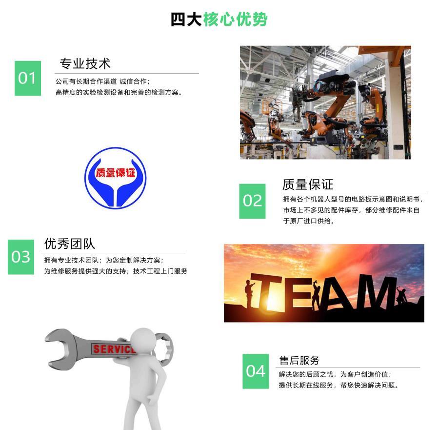 提供机器人示教器、PDB板、驱动单元、控制单元、SMB、ACU、PPRU、电机、电机齿轮、主板、机械臂等维修。