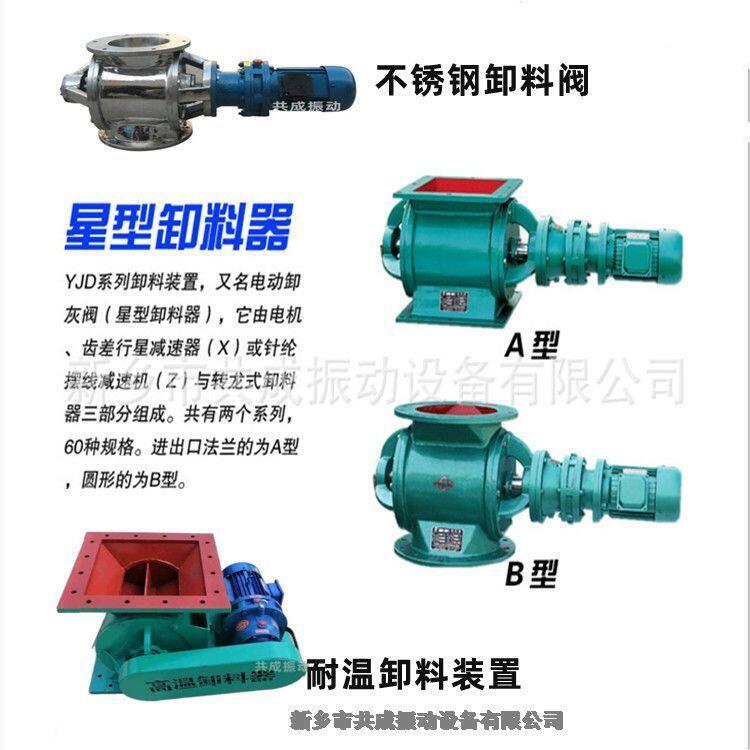 星型卸料器输出轴与输入轴与其它零件配件时,不允许直接、锤击、以防损坏。星型卸料器在运输及安装过程中,应保持平稳、避免碰撞、以至造成壳体断裂变形等。卸料器在运转过程中,避免因物料颗粒大,粘接力强引起的设备超载运转,或除尘器中遗贸异物造成的设备卡壳或电机短路导致设备或损坏,建议用户及时栓查并加装过载保护装置。星型卸料器在出厂前减速机已注足润滑油00号润滑脂,卸灰阀已注足锂基润滑脂,投入使用后6-10个月内,传动及轴承部件应补充或更换油脂,若在环境温度高,潮湿或空气中灰尘过多时,应适当缩短换油时间。星型卸料器在使用过程中,如设备出现沿轴向漏风、漏灰等现象,可坚固压料盖即可。星型卸料器适用于连续工作制,允许正反向运转。