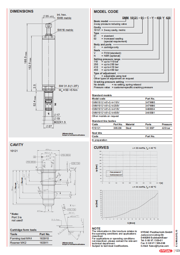 成都牧赫液压技术有限公司现货供应德国贺德克HYDAC压力控制阀DMM10121-01-C-V-110V