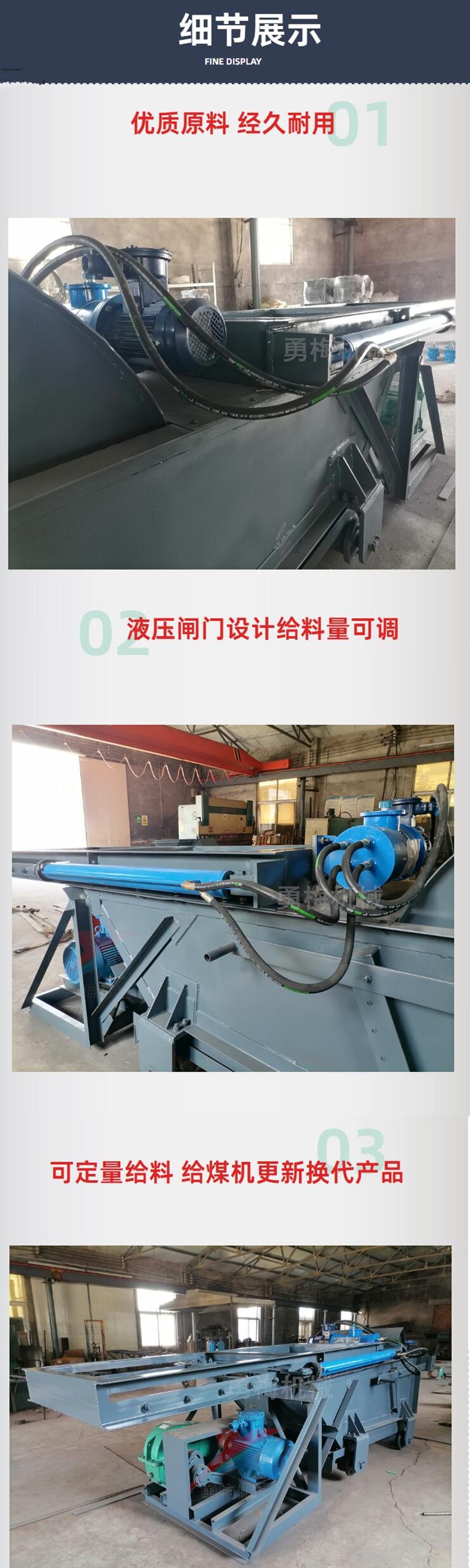 液压闸门给煤机的工作原理基于液压系统的动力驱动。其核心结构包括液压油缸、闸门机构、给料斗以及驱动装置等。当设备启动时,液压油缸在控制系统的指令下开始工作,通过活塞杆的伸缩来控制闸门的开启与关闭。物料存储在给料斗中,当闸门开启时,物料在重力作用下从给料斗中流出,通过控制闸门的开度以及开启时间,能够精准地调节物料的给料量。同时,驱动装置确保整个给料过程的稳定运行,保证物料均匀、连续地输出。