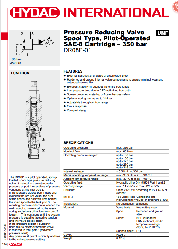 贺德克先导式减压阀DR08P-01-C-N-330V 压力控制阀