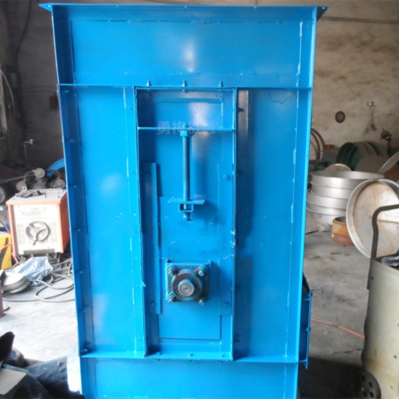 通过电机减速机驱动上链轮,带动皮带及固定在皮带上的挖斗运行,物料从进料口进入,由挖斗提升至上部出料口,通过离心重力式卸料方式将物料排出。