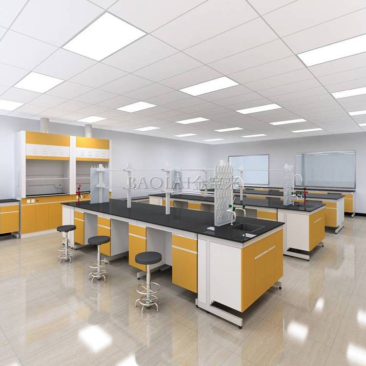2.化学实验操作台 实验室配套中心 实验室家具工程台面:?采用12.7mm厚实芯理化板台面,边缘加厚25.4mm 。抗强酸碱,耐化学腐蚀,耐温100℃,抗刻刮性能好。