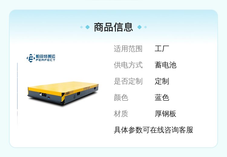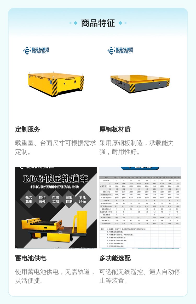 备注 | 载重量、台面尺寸、轨内侧距可定制,可选配无线遥控、遇人自动停止等装置 | ||
