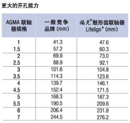 ? ? 福克鼓型齿联轴器Lifelign卓越的开孔能力和扭矩等级可以使用户在相应工况下选择较小规格的联轴器。60HZT型框架电机选用的联轴器相对于28型电机框架要小一个规格,比其他产品的质量、可靠性和性能更好但成本可以平均节约15-20。更小的外形尺寸适合在一些有空间限制但需要较大孔径和扭矩的场合使用。