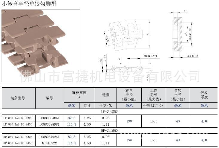 莱克斯诺Rexnord 塑料平顶链板 小转弯半径 单铰勾脚型