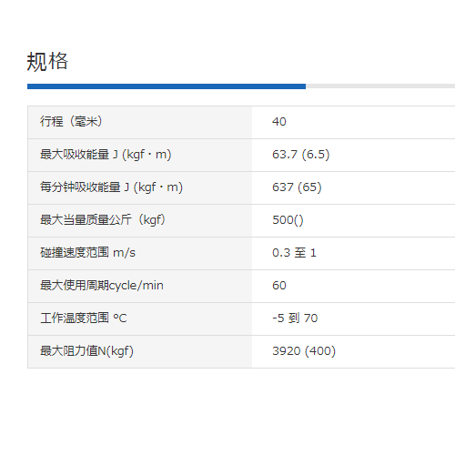 每分钟吸收能量J (kgf?m) | 637 (65) | ||
