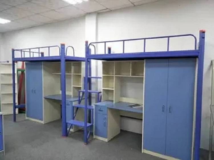 成人公寓床卡扣好安装,公寓床连体踏板高校公寓床,康胜批发成人公寓床含有床板,公寓床连体式踏板,上下床不勾脚,安全又方便,高校公寓床适用于2人,配有床板和书桌书架等,由于公寓床是立体空间组合,不仅可以节省宿舍的空间,并使宿舍整齐而美丽。