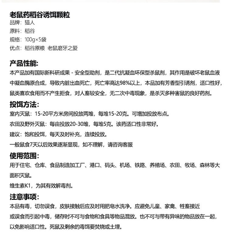产品名称 | 稻谷诱饵颗粒 | ||