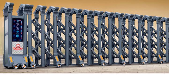 二、电动伸缩门根据材质分为不锈钢伸缩门和铝合金伸缩门。
