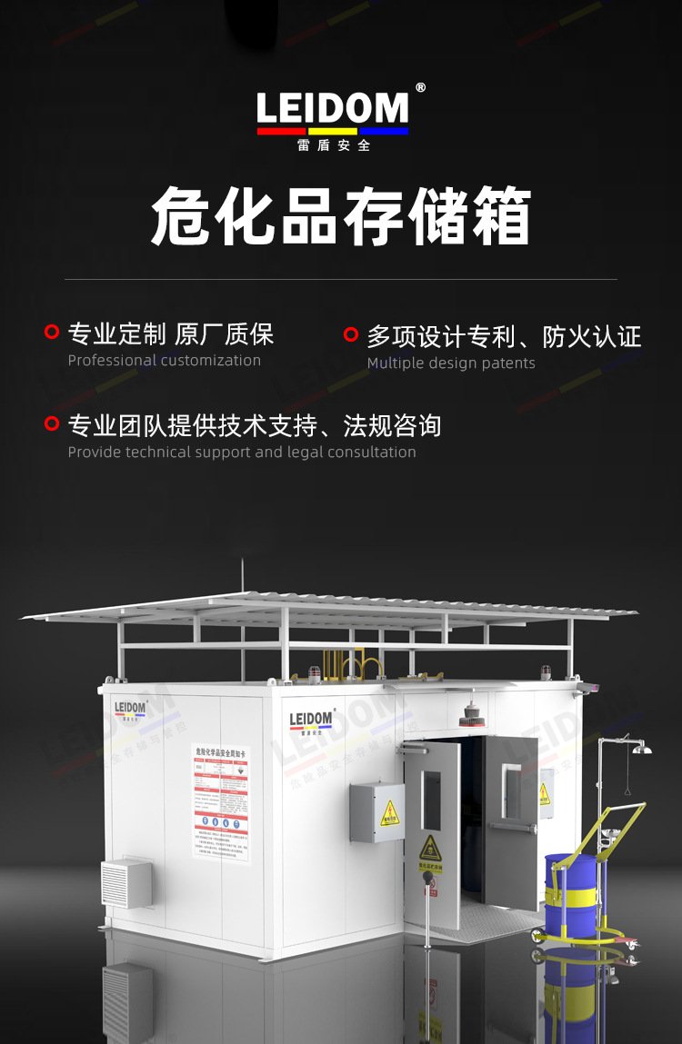 4、防雷静电保护系统:防爆仓库柜体及防爆仓库柜顶均安装有防雷接地装置。