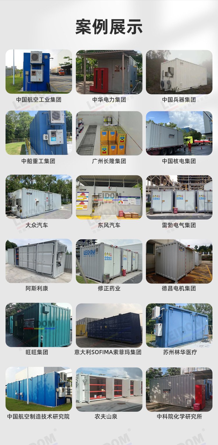 6、漏液回收系统:防爆仓库柜内设置有一体化渗漏系统自动化回收漏液。