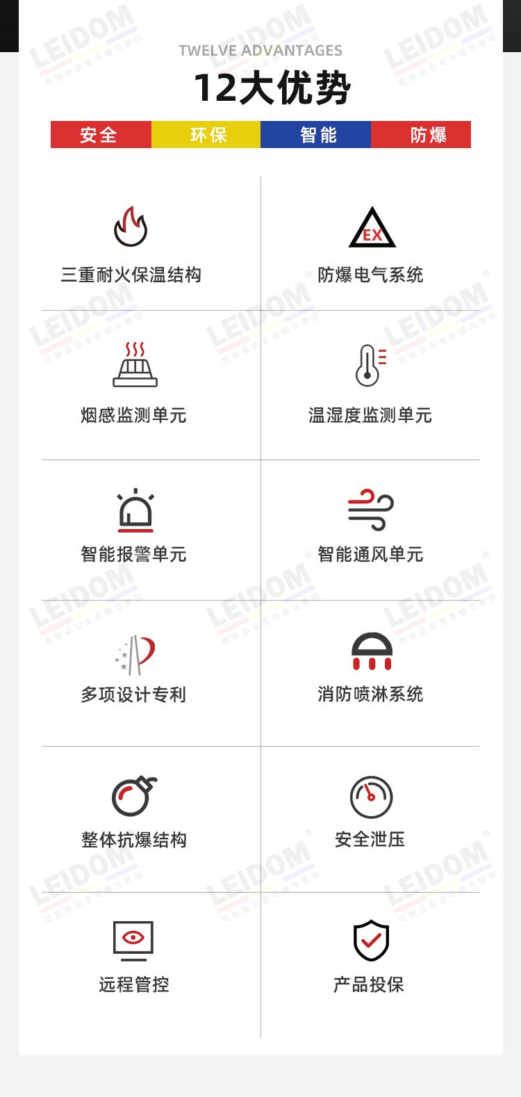 9、环境监测系统:集成式控制面板实时显示当前防爆仓库柜内各项指标状态,自动控制通风系统启闭。