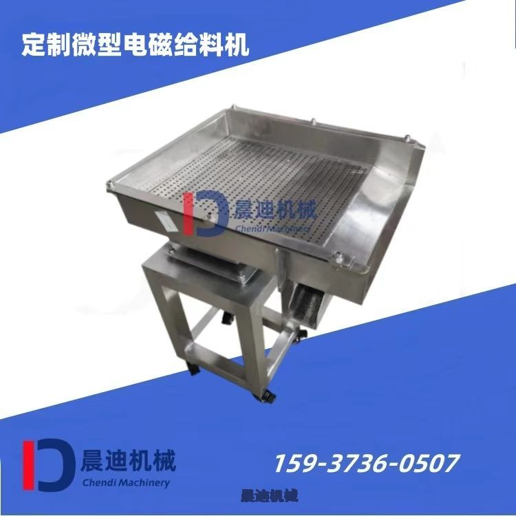 座式不锈钢电磁给料机是一种宽槽型振动给料设备,料槽尺寸500*600mm(宽*长),料槽材质304不锈钢,工作时放置在工作台上,料槽在料仓正下方,也直接和受料设备的进料口衔接起来。接电启动后,料仓里面的物料通过电磁给料机直接输送到皮带机、定量打包机等受料设备中,具有操作简单、运行稳定,占地面积小,重量轻,工作能耗低,连续工作时间长等特点,料槽尺寸和材质可按照客户需求定制,详情可来电告知。